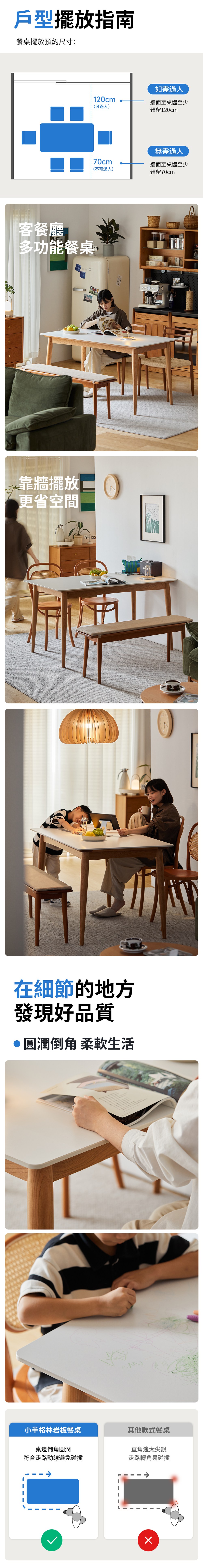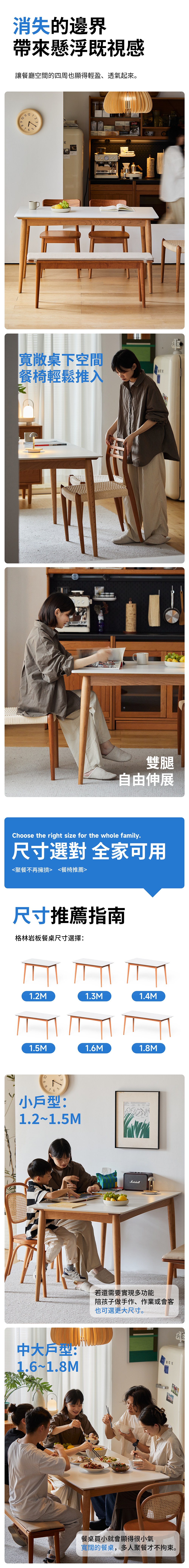 *注意:以下為情境示意圖,實際商品款式為格林櫻桃木岩板1.2M餐桌-白色