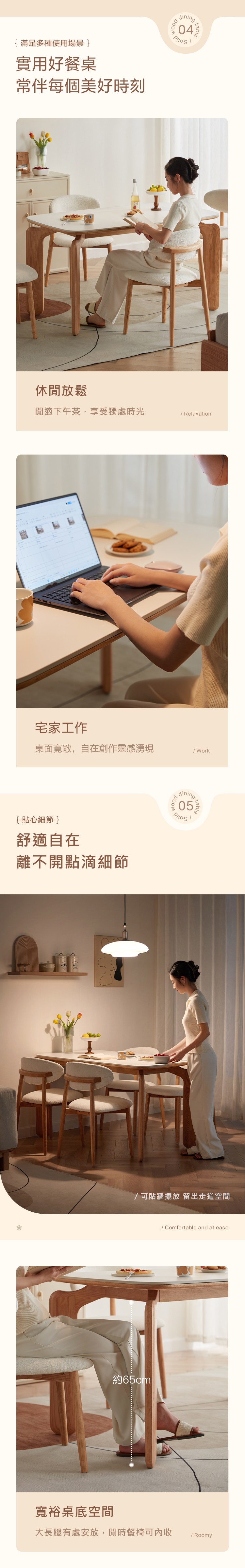 *注意:以下為情境示意圖,實際商品款式為知遇奶油風橡木岩板1.4M餐桌 LS384