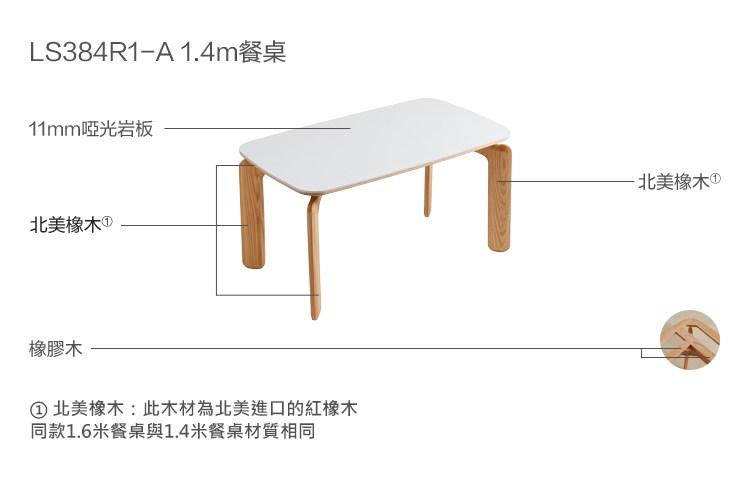 林氏木業知遇奶油風橡木岩板1.4M餐桌 LS384