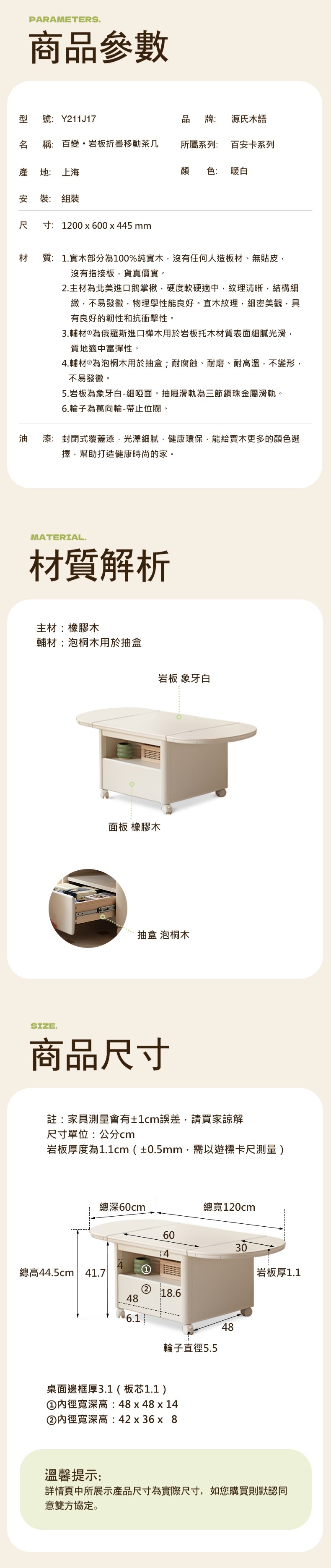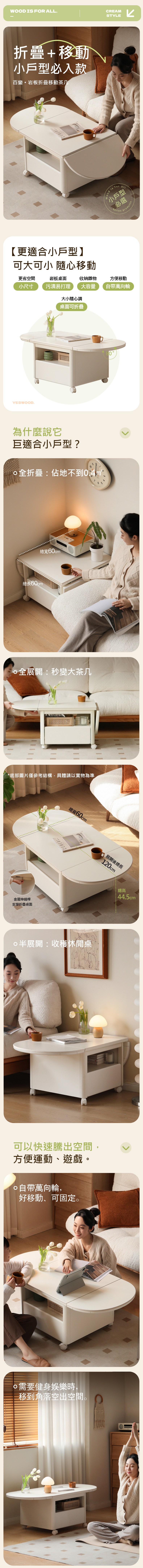 *注意:以下為情境示意圖,實際商品款式為百變奶油風實木岩板摺疊可移動茶几1.2M Y246J07