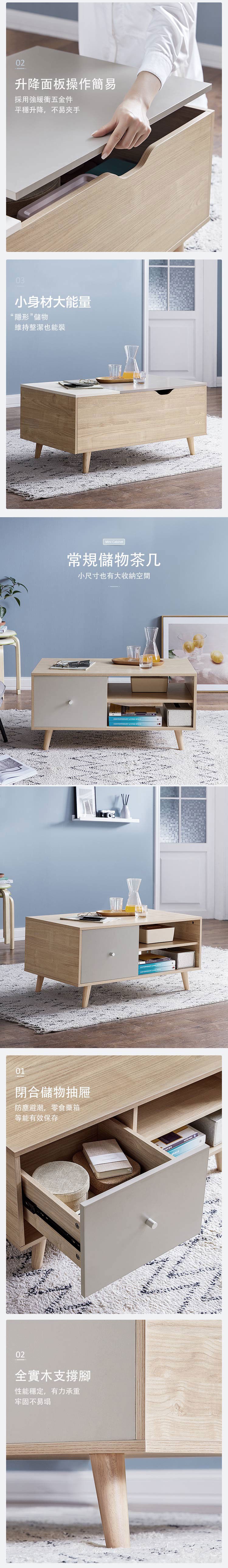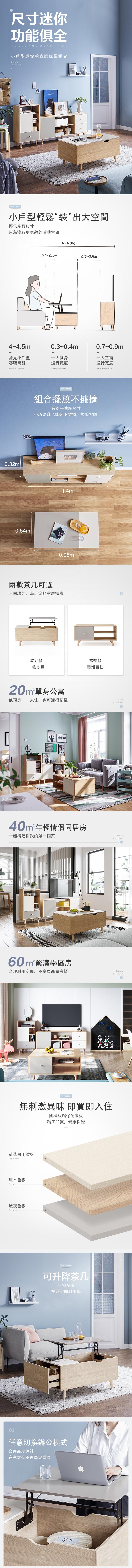 *注意:以下為情境示意圖,實際商品款式為林氏木業北歐簡約實木腳小戶型單門茶几 JF2L-A原木色+灰色