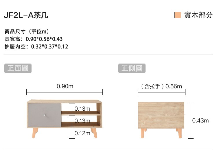 hoi!林氏木業北歐簡約實木腳小戶型單門茶几 JF2L-A原木色+灰色