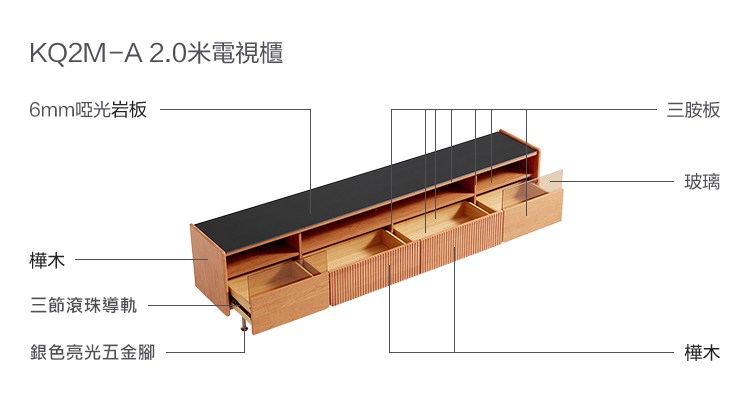 *注意:以下為情境示意圖,實際商品款式為秋辰系列復古風附燈2M收納岩板電視櫃 KQ2M