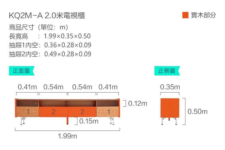 林氏木業秋辰系列復古風附燈2M收納岩板電視櫃 KQ2M