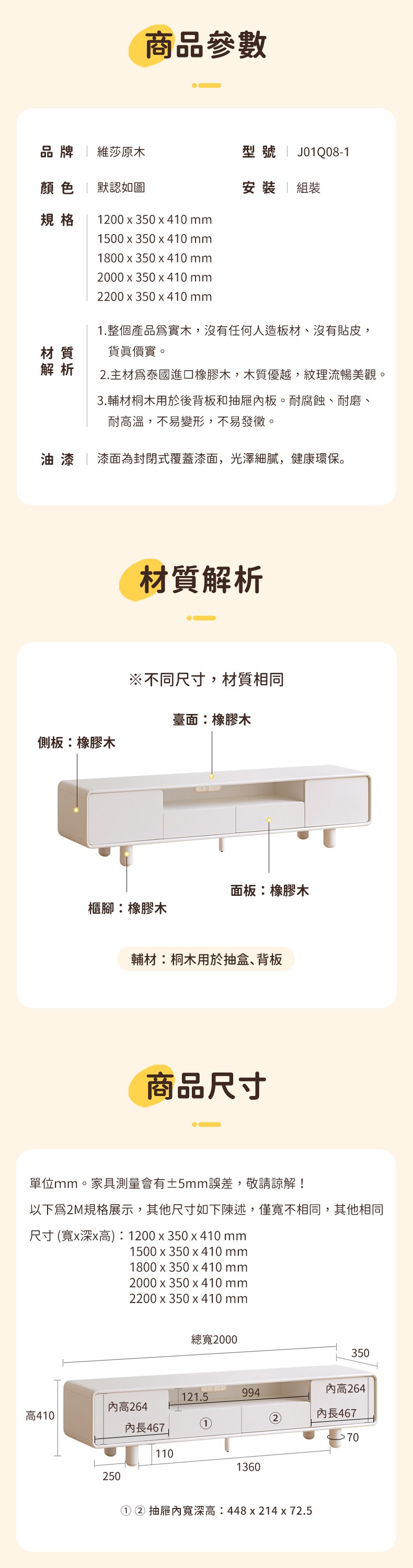 原木日式奶油風實木二抽儲物電視櫃1.8M J01Q08