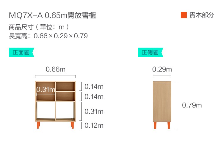 林氏木業原木系清新0.65M開放矮書櫃 MQ7X