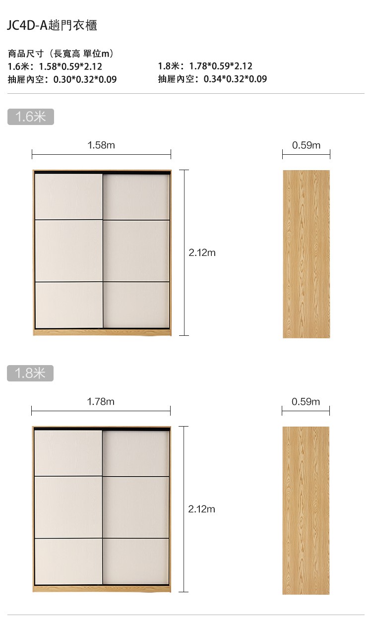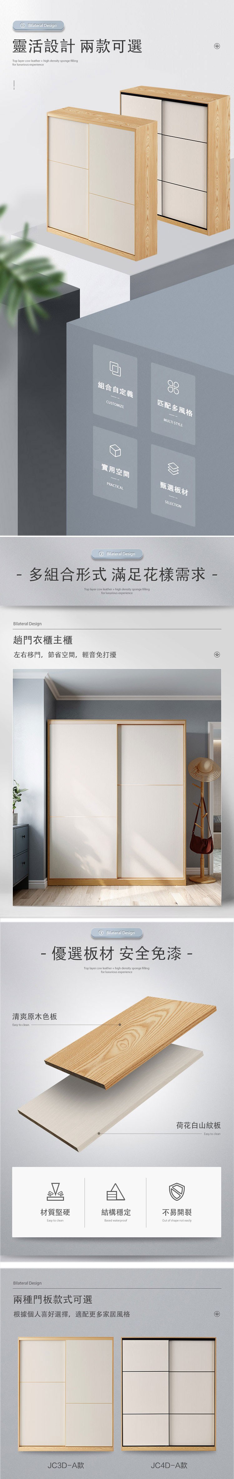 *注意:以下為情境示意圖,實際商品款式為現代簡約黑線滑門1.8M衣櫃 JC4D-A原木色+白色