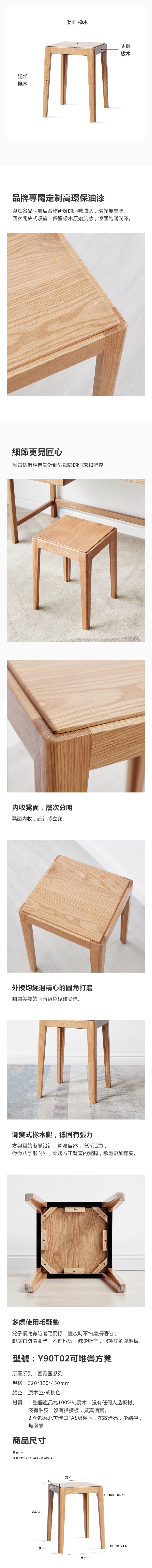 源氏木語西雅圖橡木可堆疊方凳 Y90T02