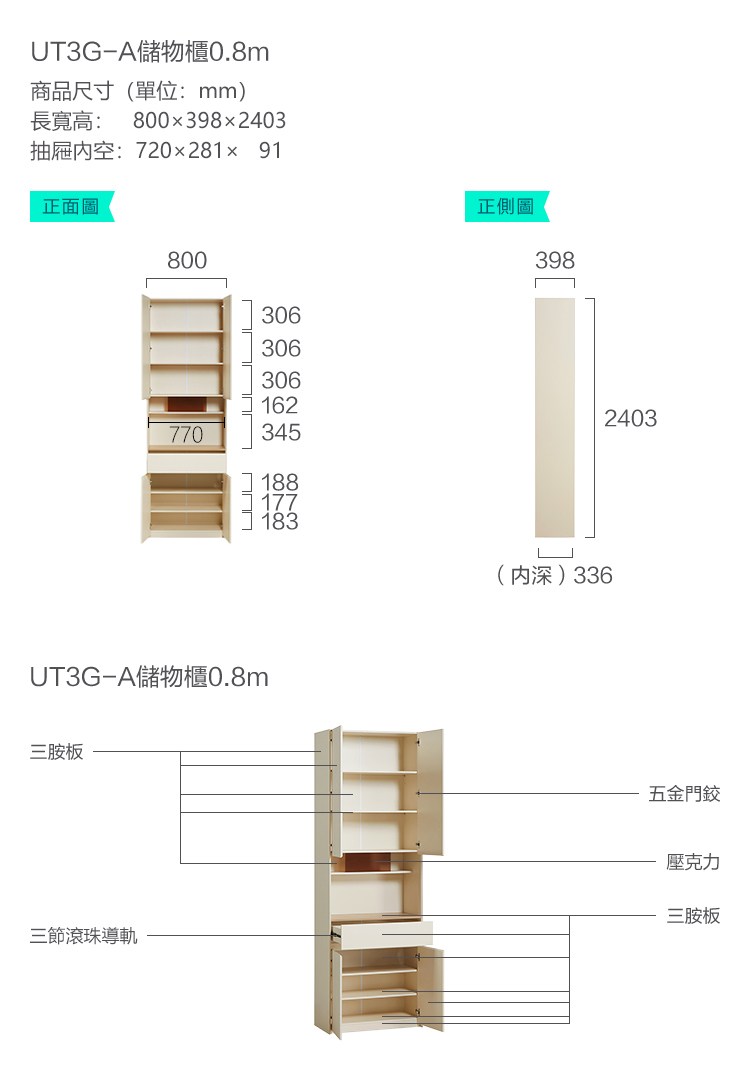 KHAKI多功能電器櫃/廚房櫃/餐櫃/收納櫃 完美主義【X0152】