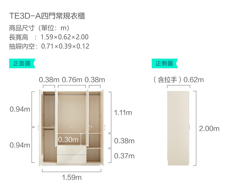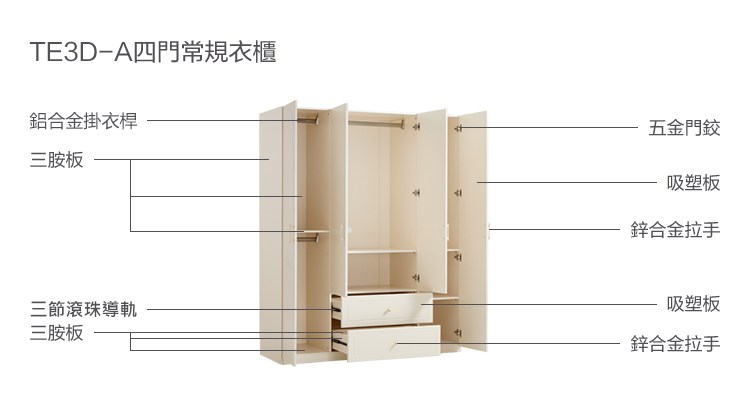 *注意:以下為情境示意圖,實際商品款式為椰子糖系列四門衣櫃 TE3D