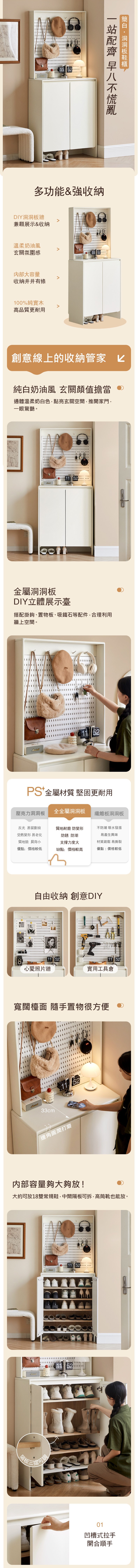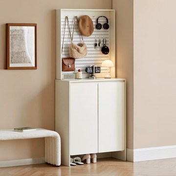 *注意:以下為情境示意圖,實際商品款式為原木日氏簡白奶油風實木洞洞板收納玄關鞋櫃0.6M J01M07-1