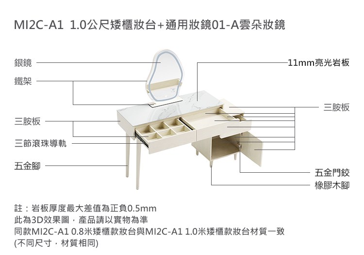 *注意:以下為情境示意圖,實際商品款式為小方糖系列矮櫃0.8M附鏡伸縮化妝桌 MI2C