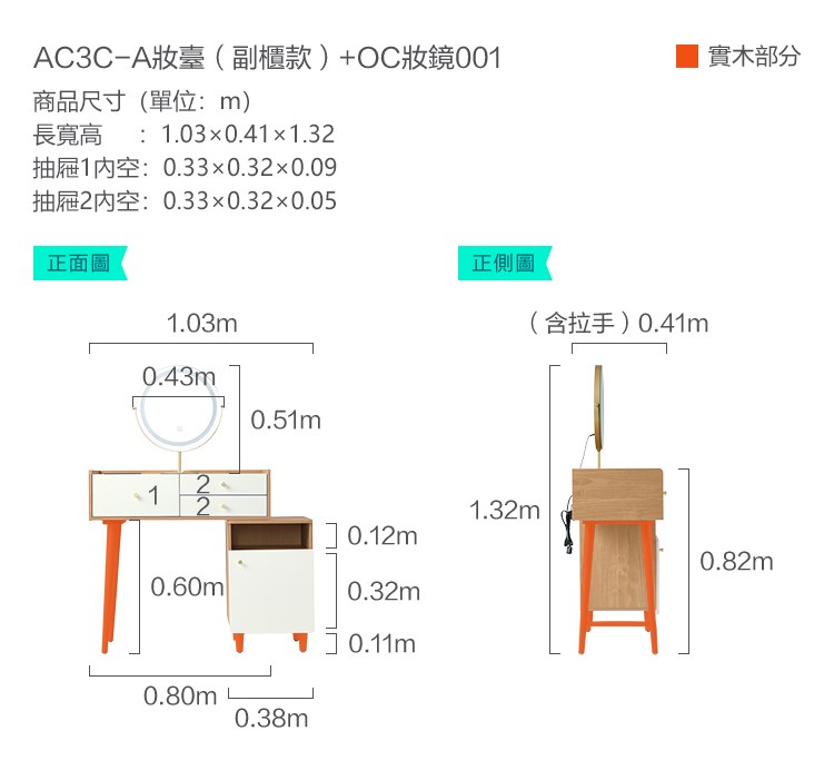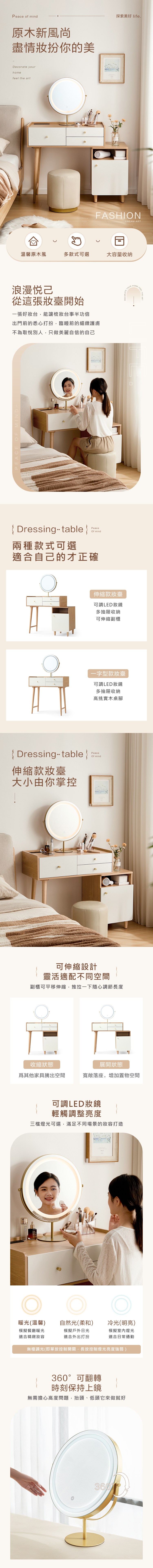 林氏木業北歐簡約三抽伸縮化妝桌 AC3C