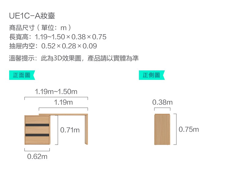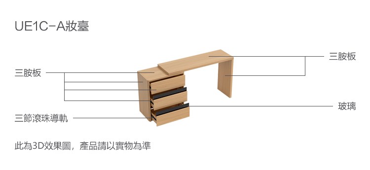 *注意:以下為情境示意圖,實際商品款式為北歐原木風抽屜櫃可伸縮化妝桌 UE1C