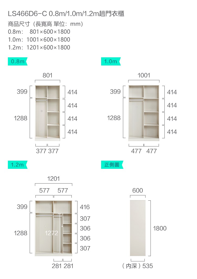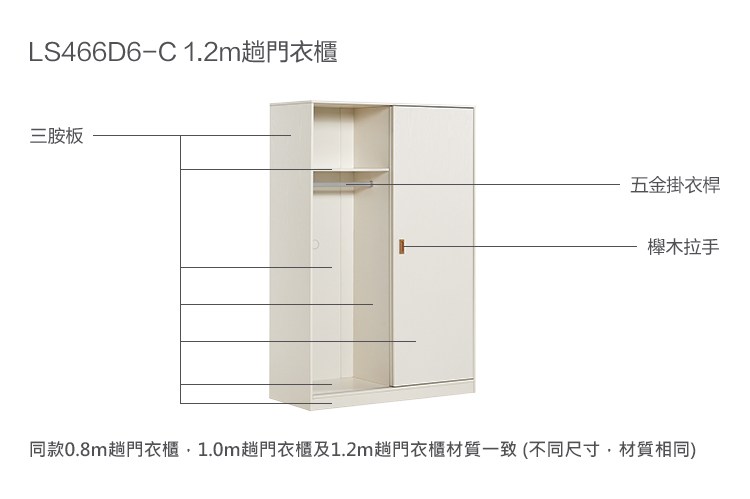 *注意:以下為情境示意圖,實際商品款式為北歐小戶型1.2M滑門衣櫃 LS466-白色