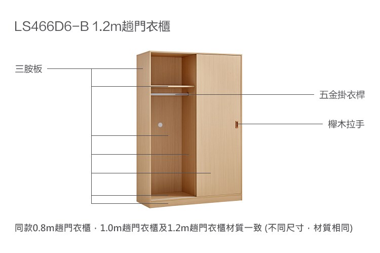 *注意:以下為情境示意圖,實際商品款式為北歐小戶型1.2M滑門衣櫃 LS466-原木色