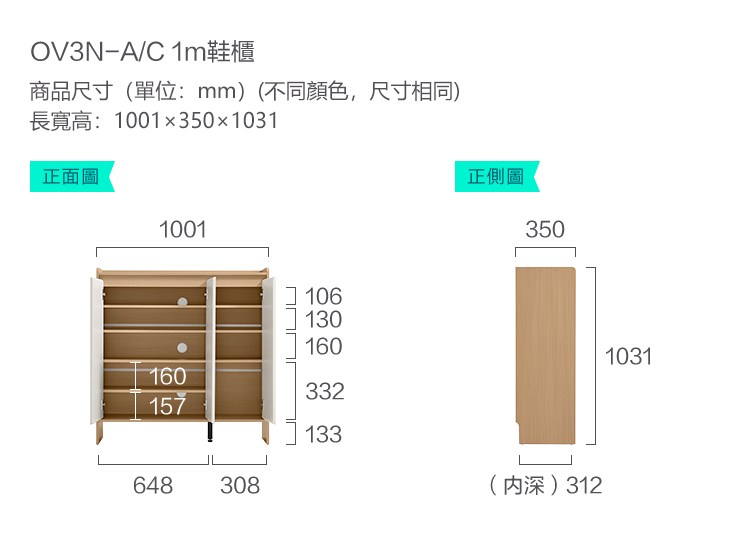 *注意:以下為情境示意圖,實際商品款式為簡約雙色1M三門鞋櫃 OV3N-灰色