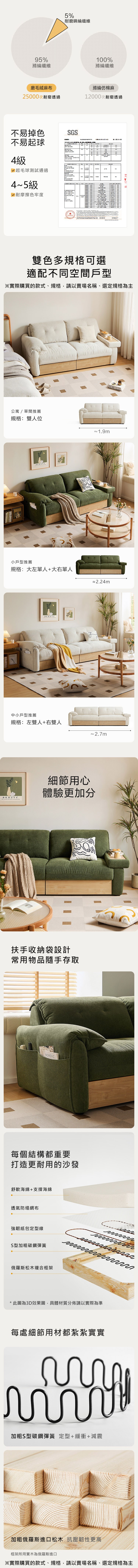 hoi!林氏木業翻轉扶手拼色貓抓布三人布沙發1.8M BS171 清提綠