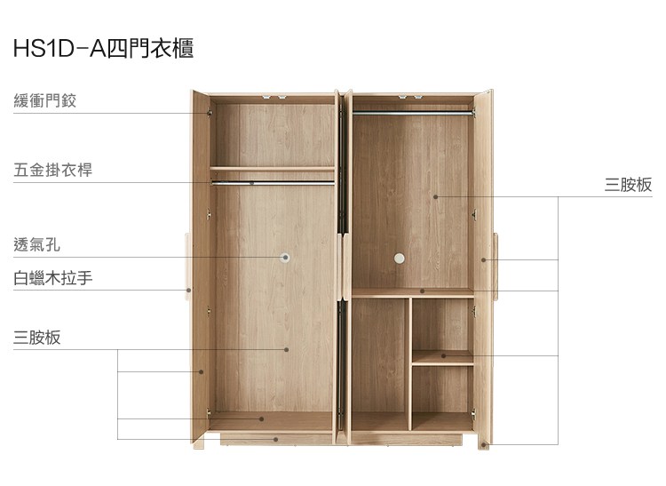 hoi!林氏木業北歐現代簡約四門衣櫃 HS1D