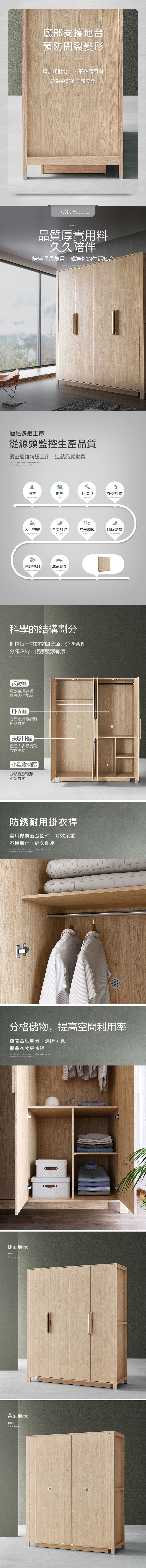 《HOPMA》美背歐森三門四抽衣櫃 台灣製造 衣櫥 抽屜櫃 衣物收納櫃-淺橡(漂流)木