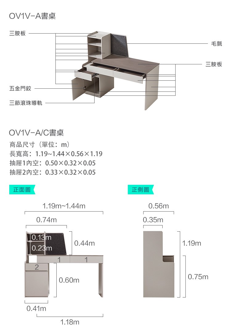 hoi! 林氏木業簡約雙色多功能可伸縮書桌 OV1V-原木+灰