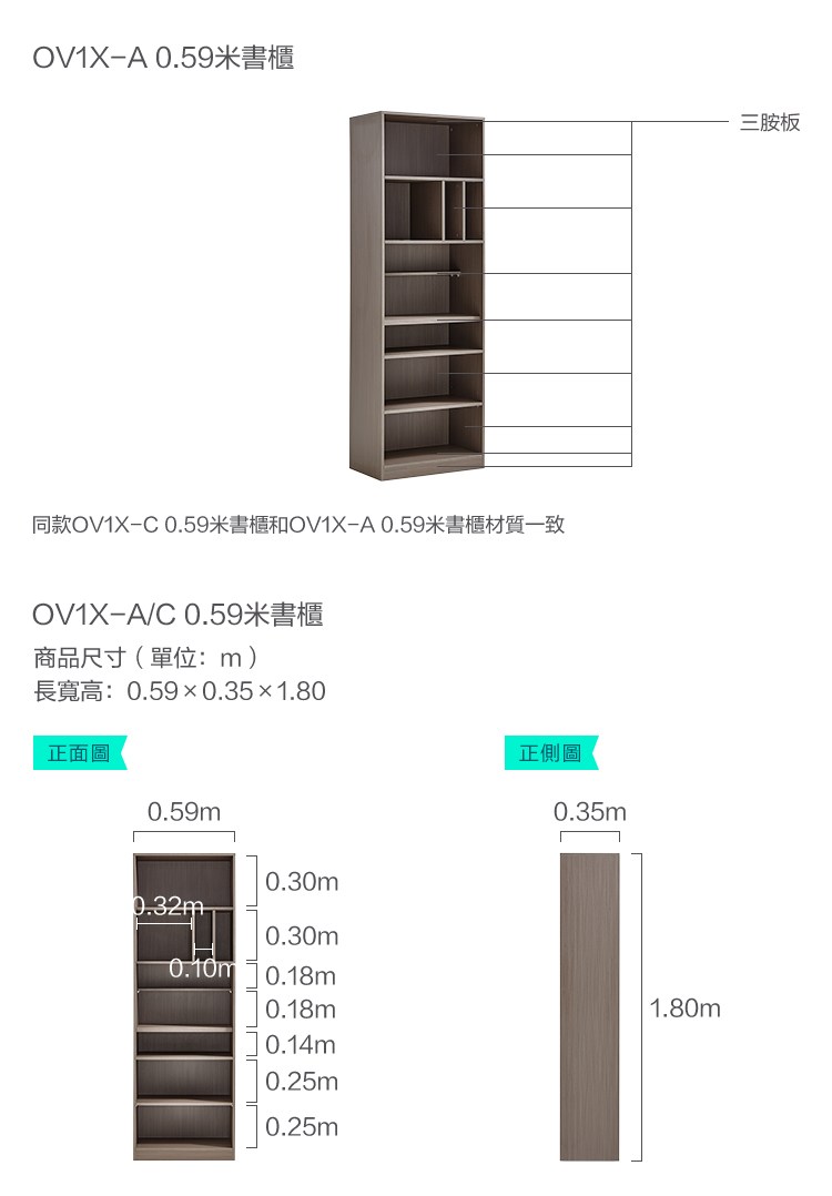 林氏木業簡約雙色多功能0.59M開放式書櫃 OV1X-原木+灰