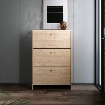 《HOPMA》大容量拉門三層鞋櫃 台灣製造 薄型掀門櫃 翻斗窄鞋架 玄關收納-拼版柚木