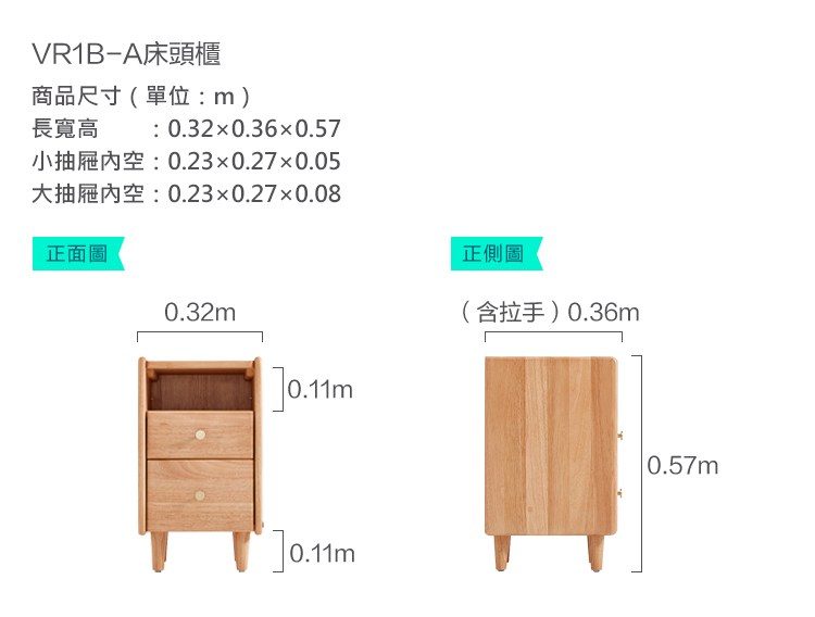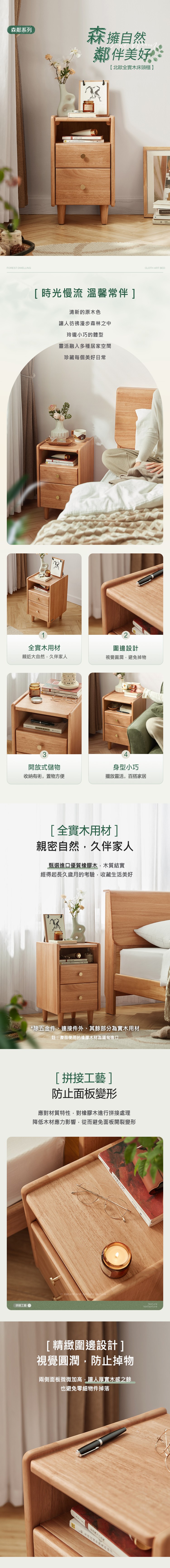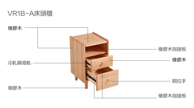 林氏木業北歐森鄰系列實木雙抽床頭櫃 VR1B