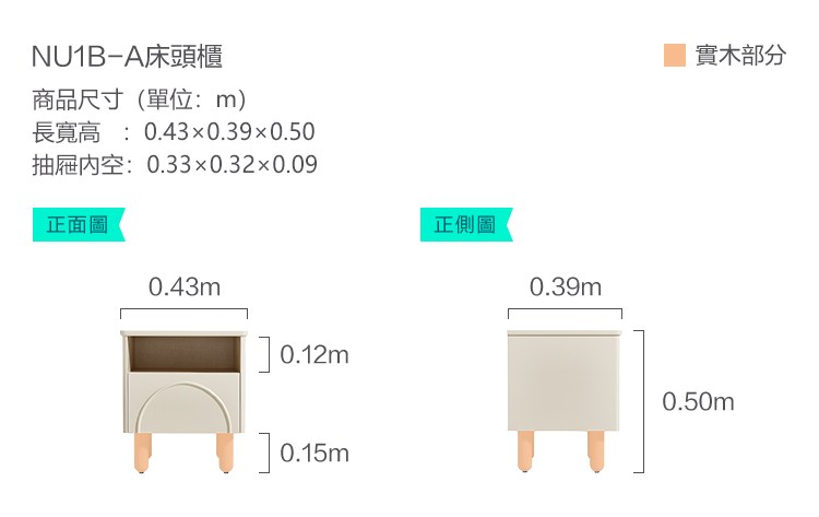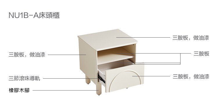 林氏木業奶油侘寂風單抽床頭櫃 NU1B