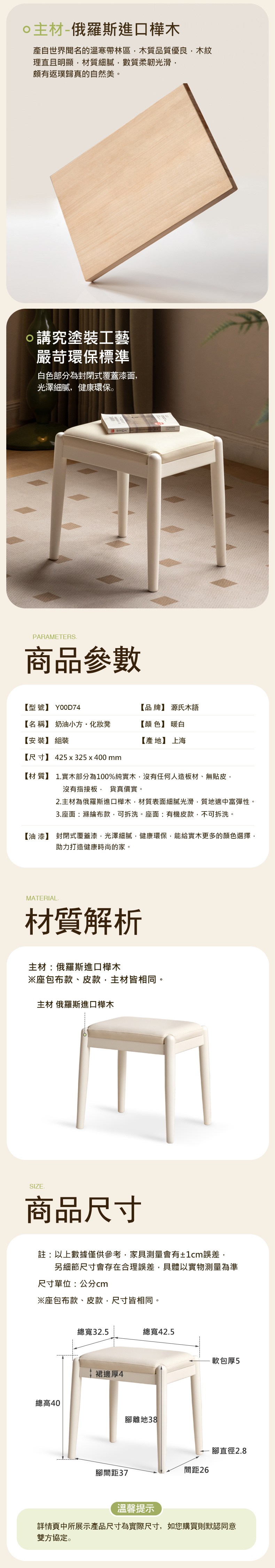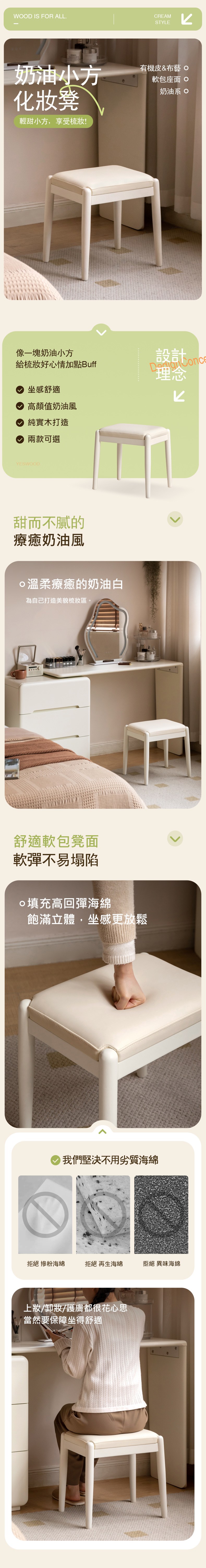 源氏木語奶油風實木皮革化妝椅 Y00D74 乳白