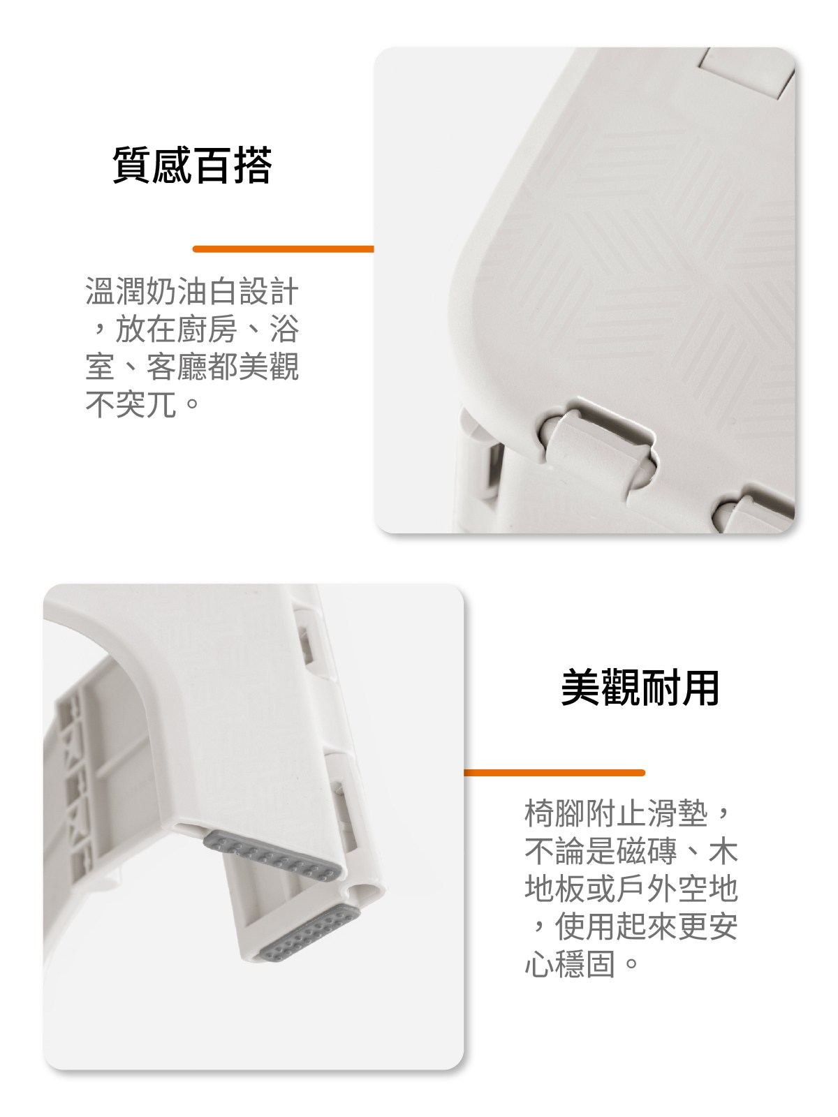 麥地奇止滑折合椅 32.3CM 奶油白