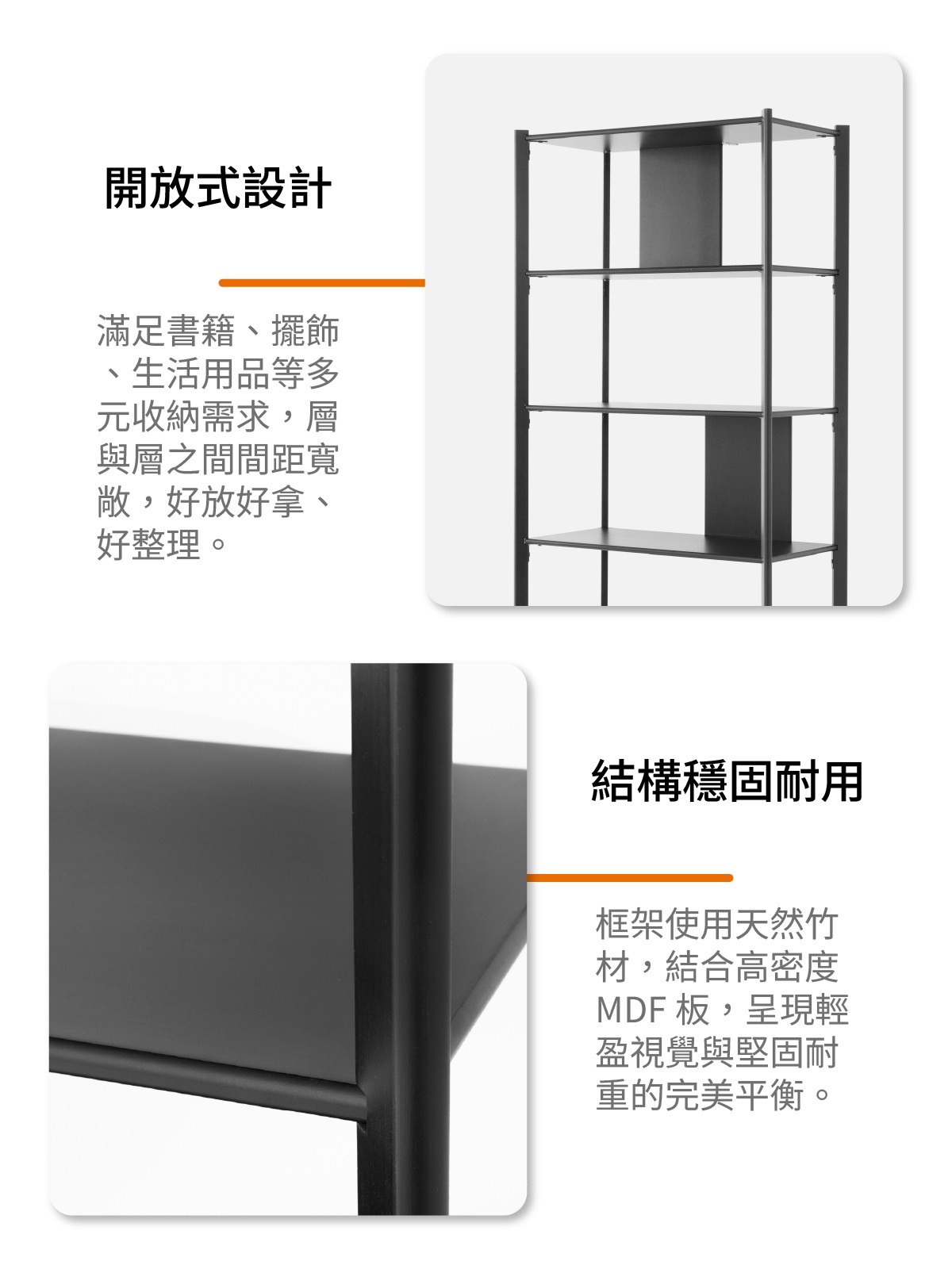 EASYHOME 厚板收納展示書櫃 DIY 組裝 北歐原木色 + 黑色 80 x 29.3 x 98.7cm 3層