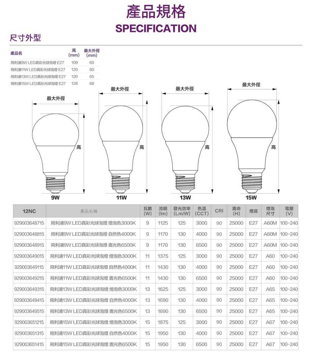 飛利浦13W真彩光球泡燈-燈泡色
