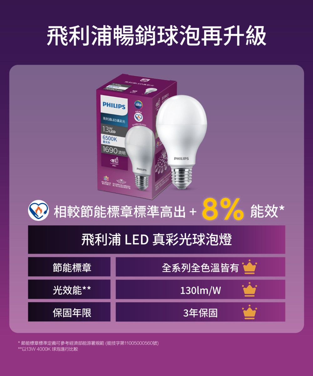[家速配]飛利浦13W真彩光球泡燈-燈泡色