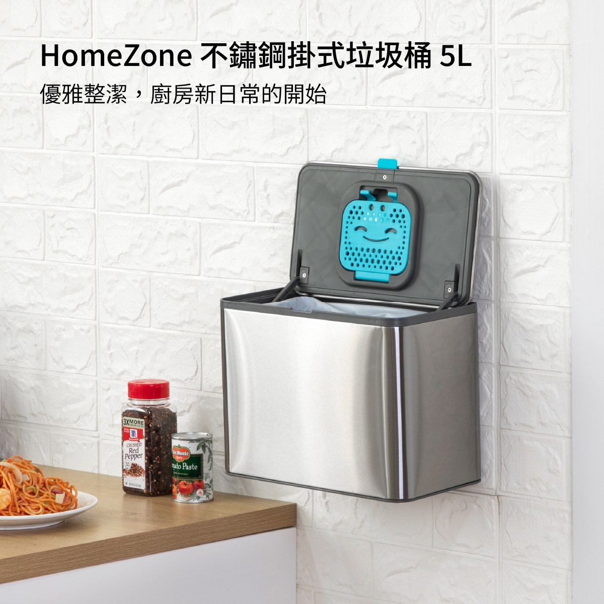 HomeZone 不鏽鋼掛式垃圾桶 5L