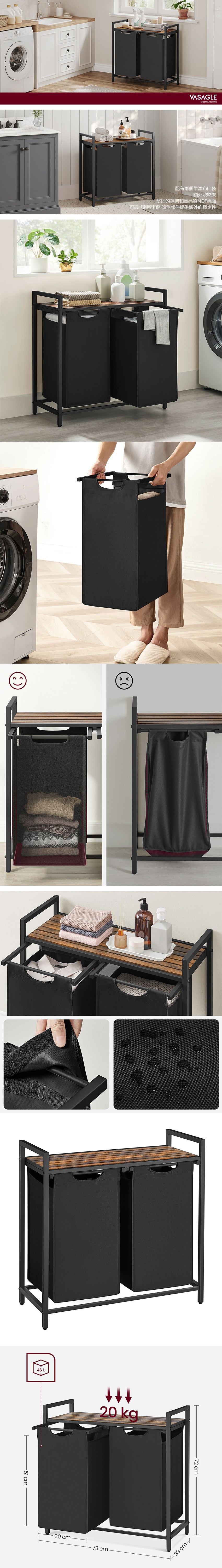 VASAGLE 工業風二格可拆卸式牛津布洗衣籃 BLH201B01V2