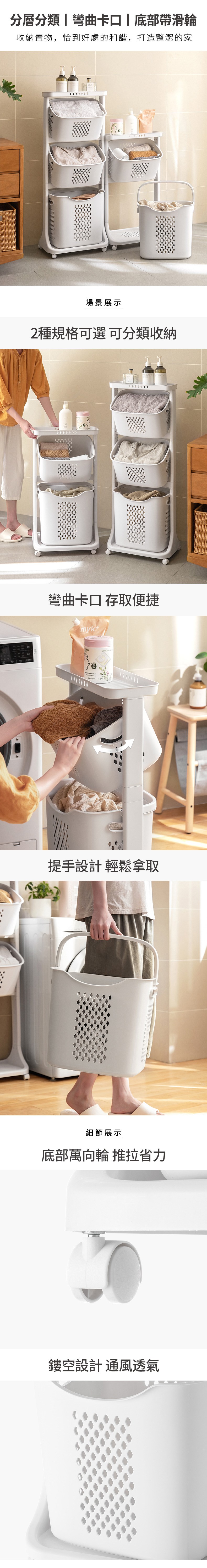 【Mr.box】掛勾款2層分類髒衣籃洗衣收納籃-附輪