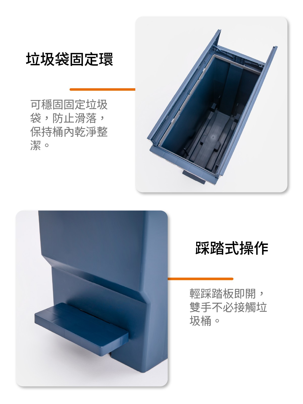 日本雙開腳踏式垃圾桶 32L 午夜藍
