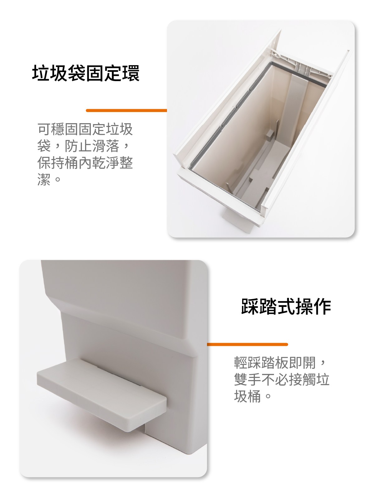 腳踏長形垃圾桶 20L 白