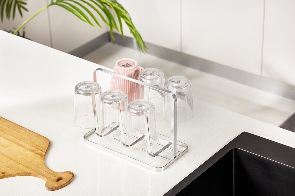 杯架6只裝 水杯掛架咖啡杯置物架瀝水架家用帶托盤套裝玻璃杯架子