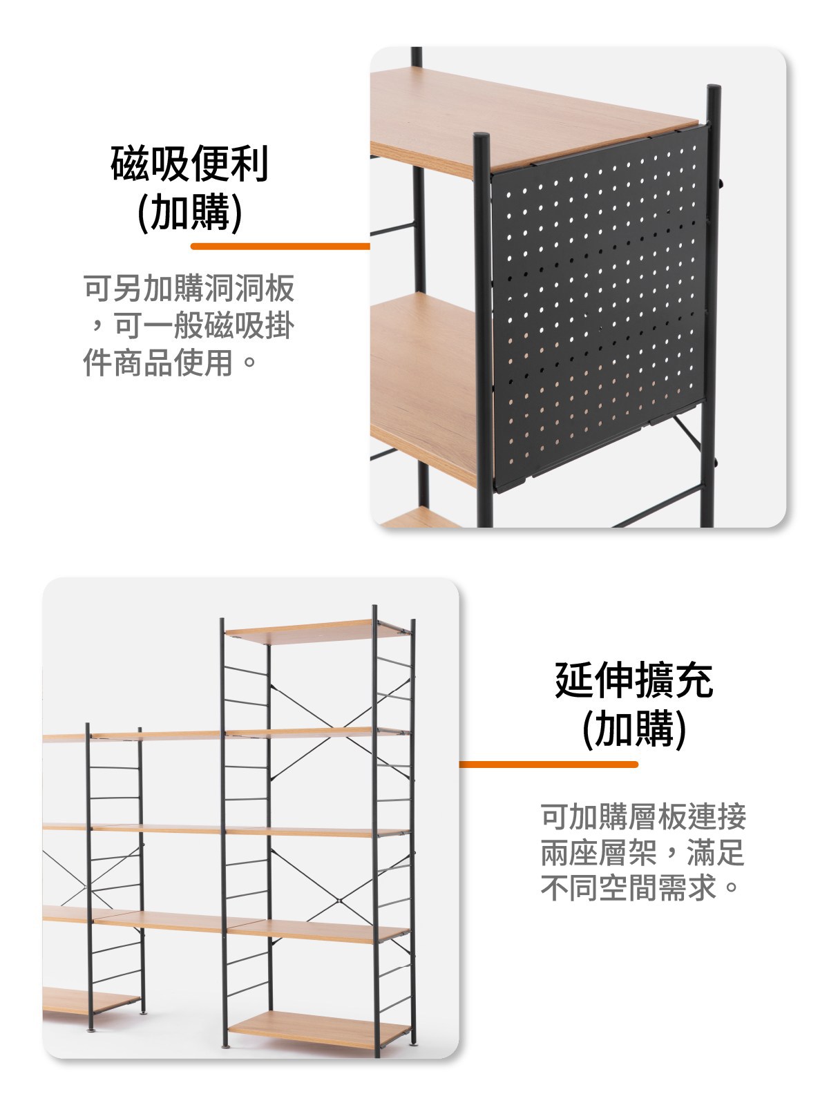 (組合)特力屋 快裝個性化層架 4+5層架套組 含延伸層板4片+洞洞板2片 191x44.5x163cm 書架 收納架 置物架