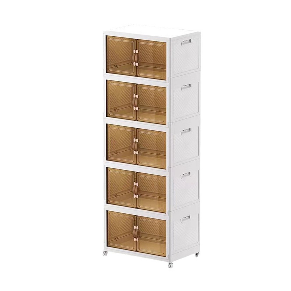 80CM五層多功能摺疊雙開門帶輪收納櫃/置物櫃(抽屜櫃/收納箱/收納架奶油純白