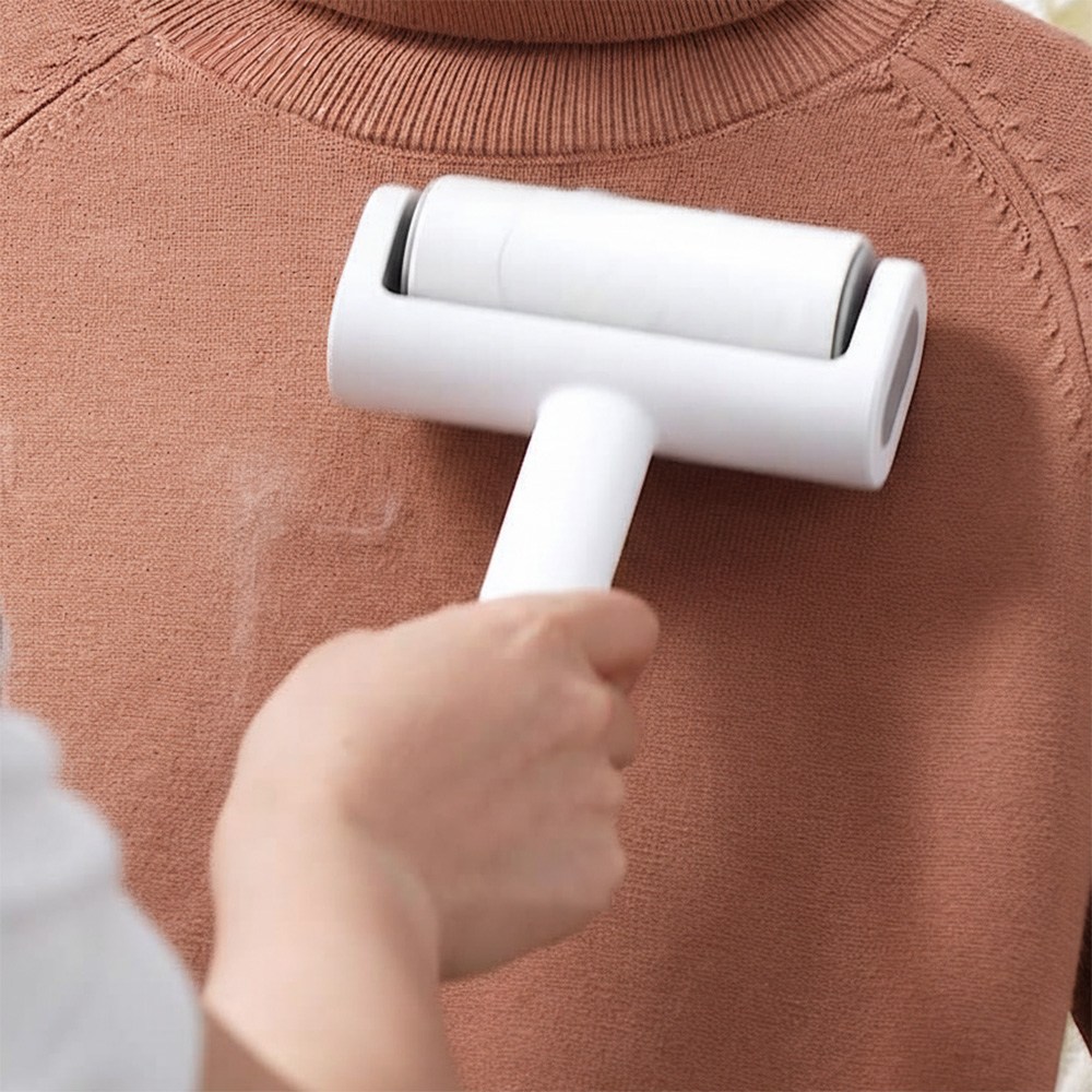 AHOYE 直立收納短柄黏毛除塵滾筒 附60張黏塵紙 輕鬆清潔毛髮灰塵 適用於衣物、沙發、地板 1個 均碼