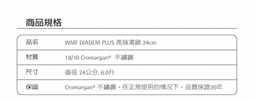 WMF 獨家優惠組 DIADEM PLUS 高身湯鍋 24cm