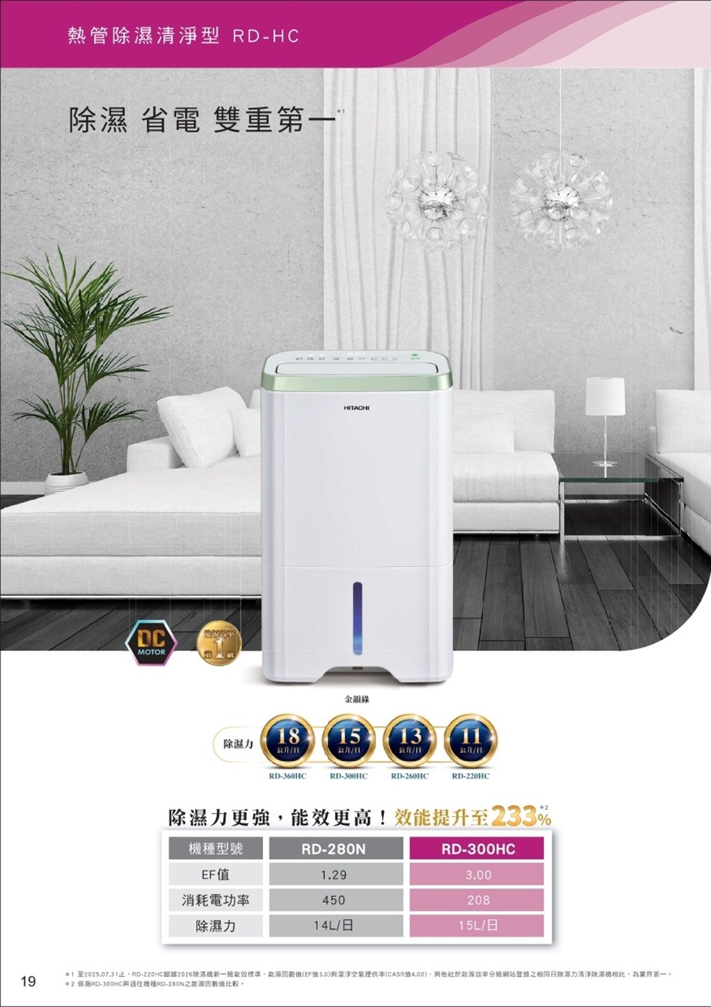 HITACHI日立 1級能效15公升舒適節電除濕機 RD-300HC