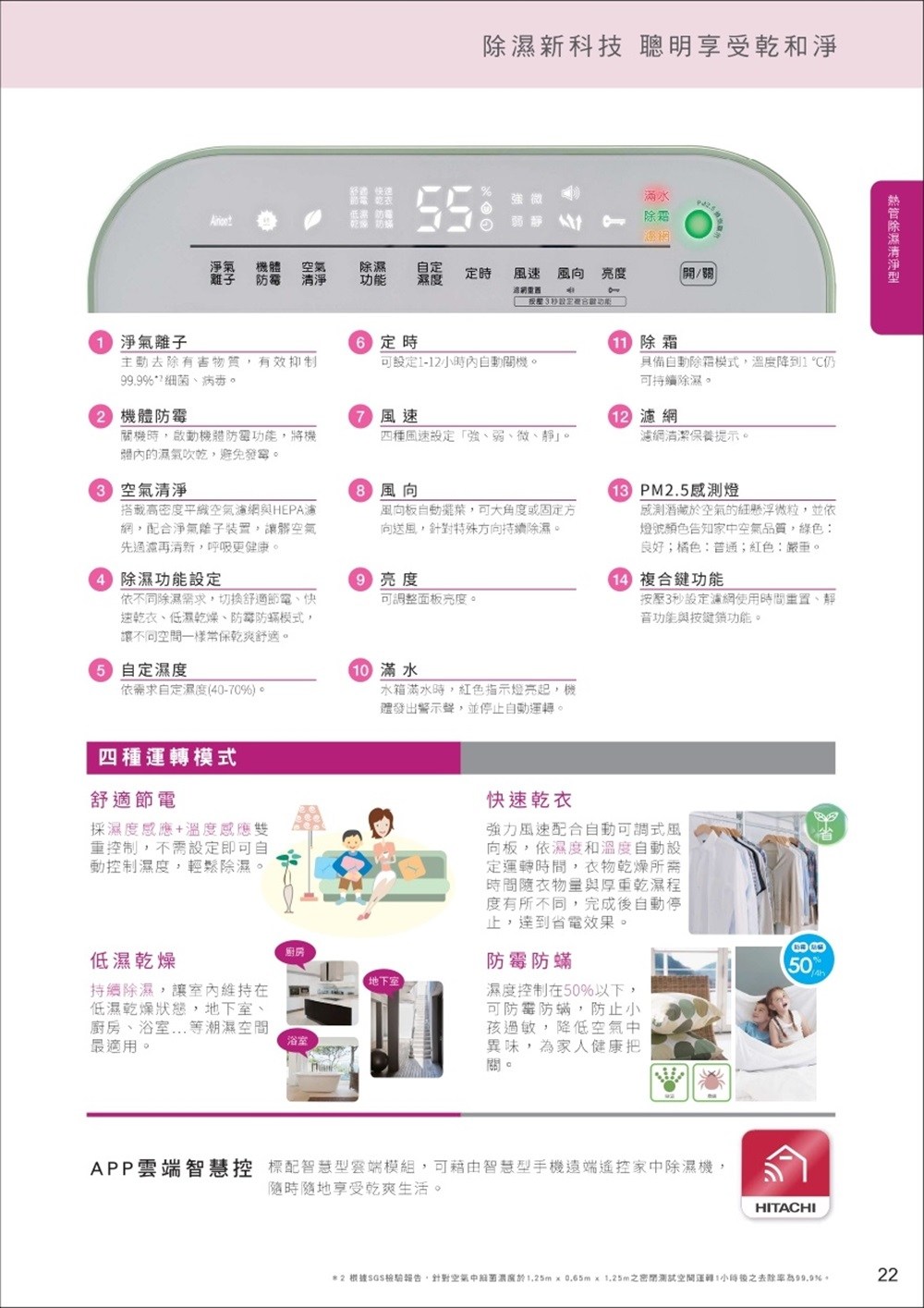 HITACHI 日立 除濕清淨型除濕機 5L RD-22FC