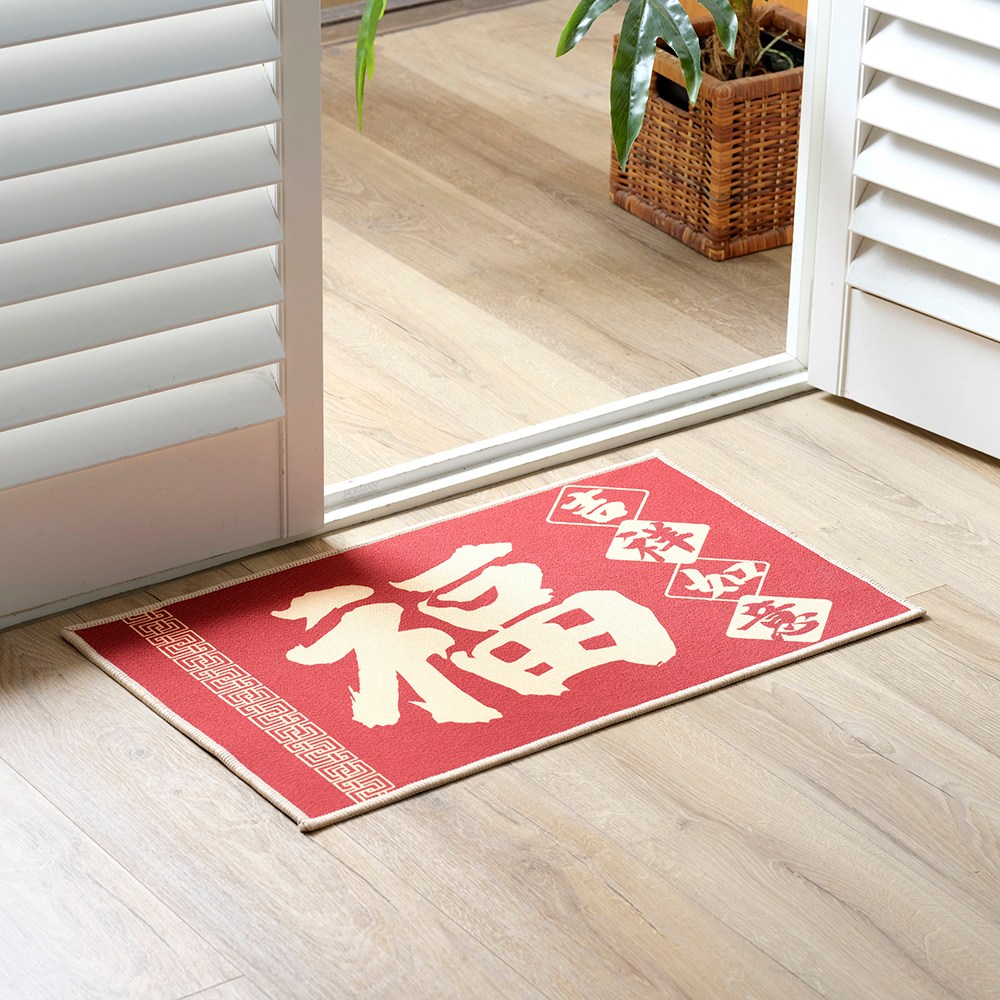 甄選好物🌈新年入戶門地墊紅色絲圈進門腳墊玄關家用喬遷喜慶除塵地毯可剪裁