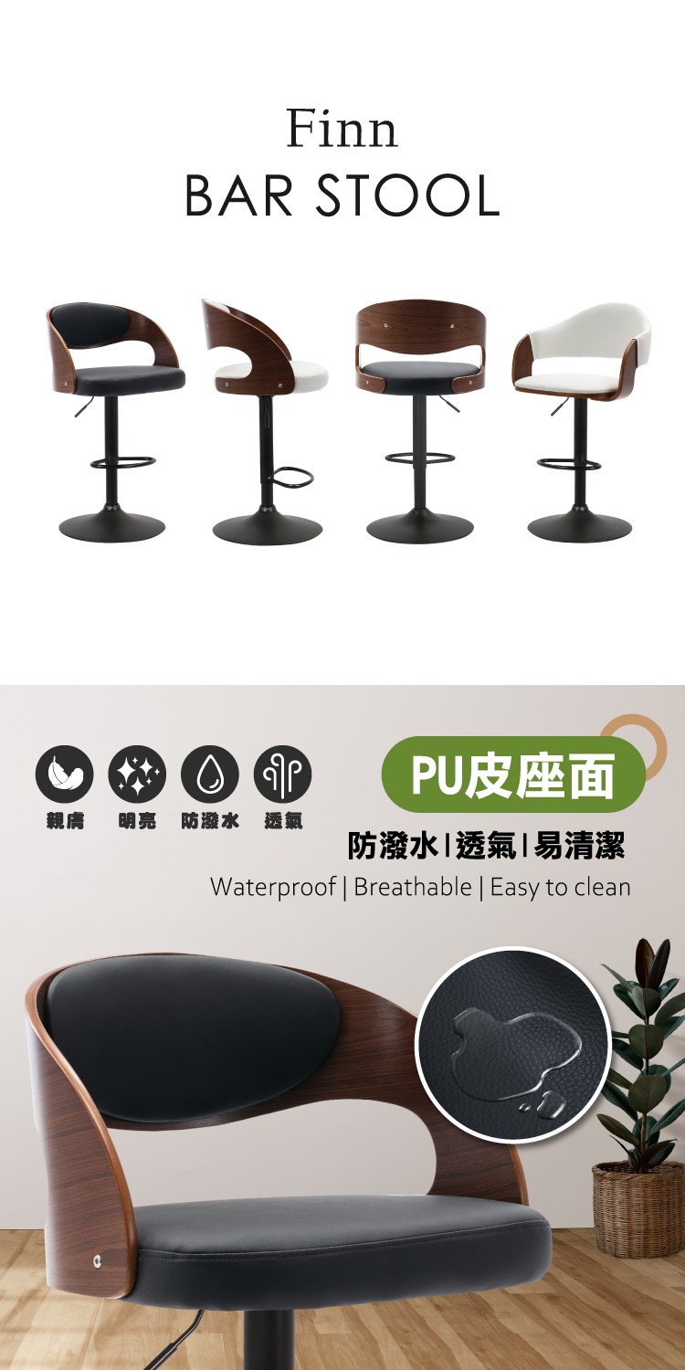 [E-home]Finn芬恩曲木PU升降黑腳吧檯椅,經典時尚造型適合搭配各式空間,輕鬆點亮生活的品味。