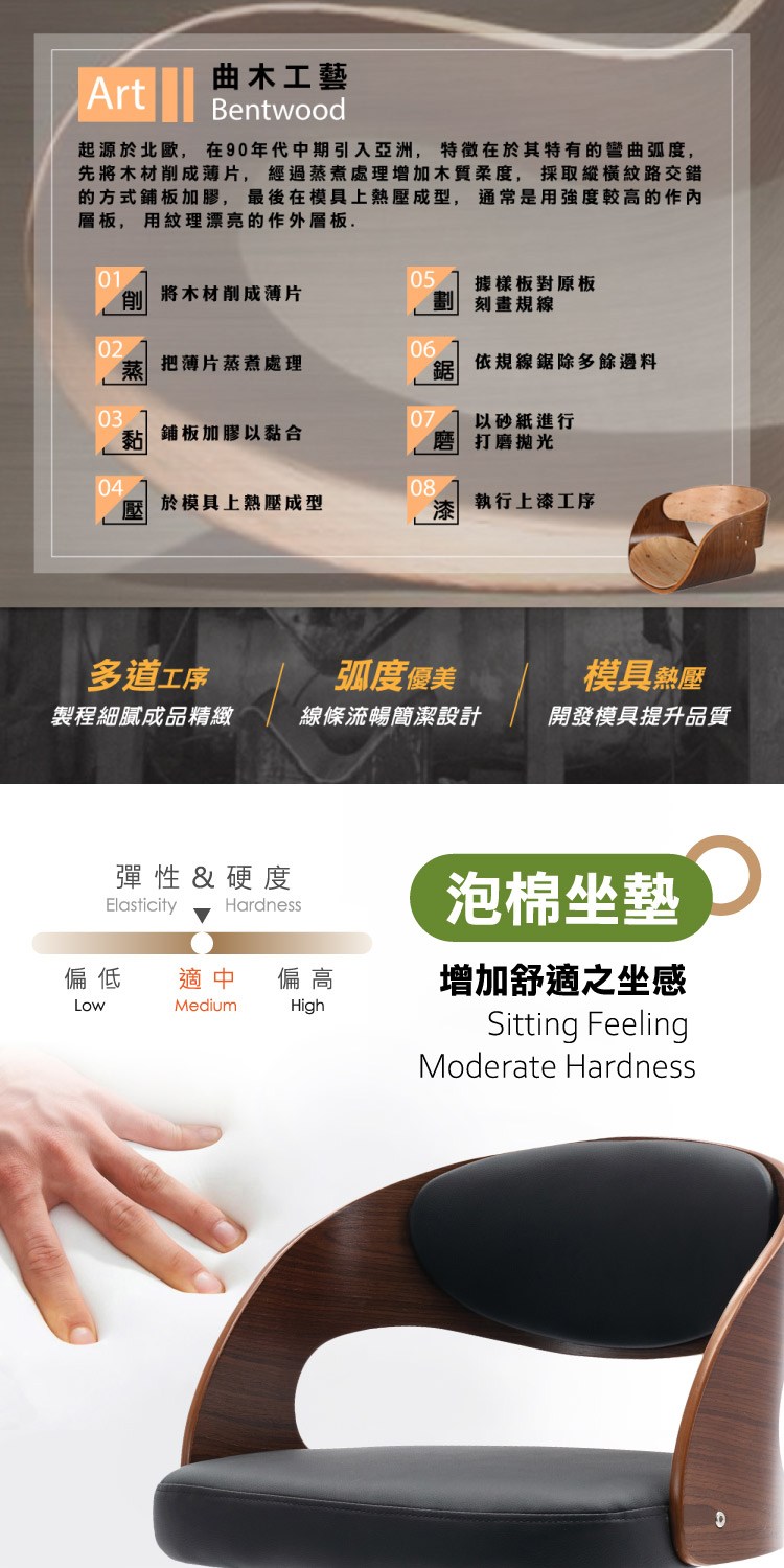 材質:PU皮+曲木+泡棉+黑漆金屬圓盤腳