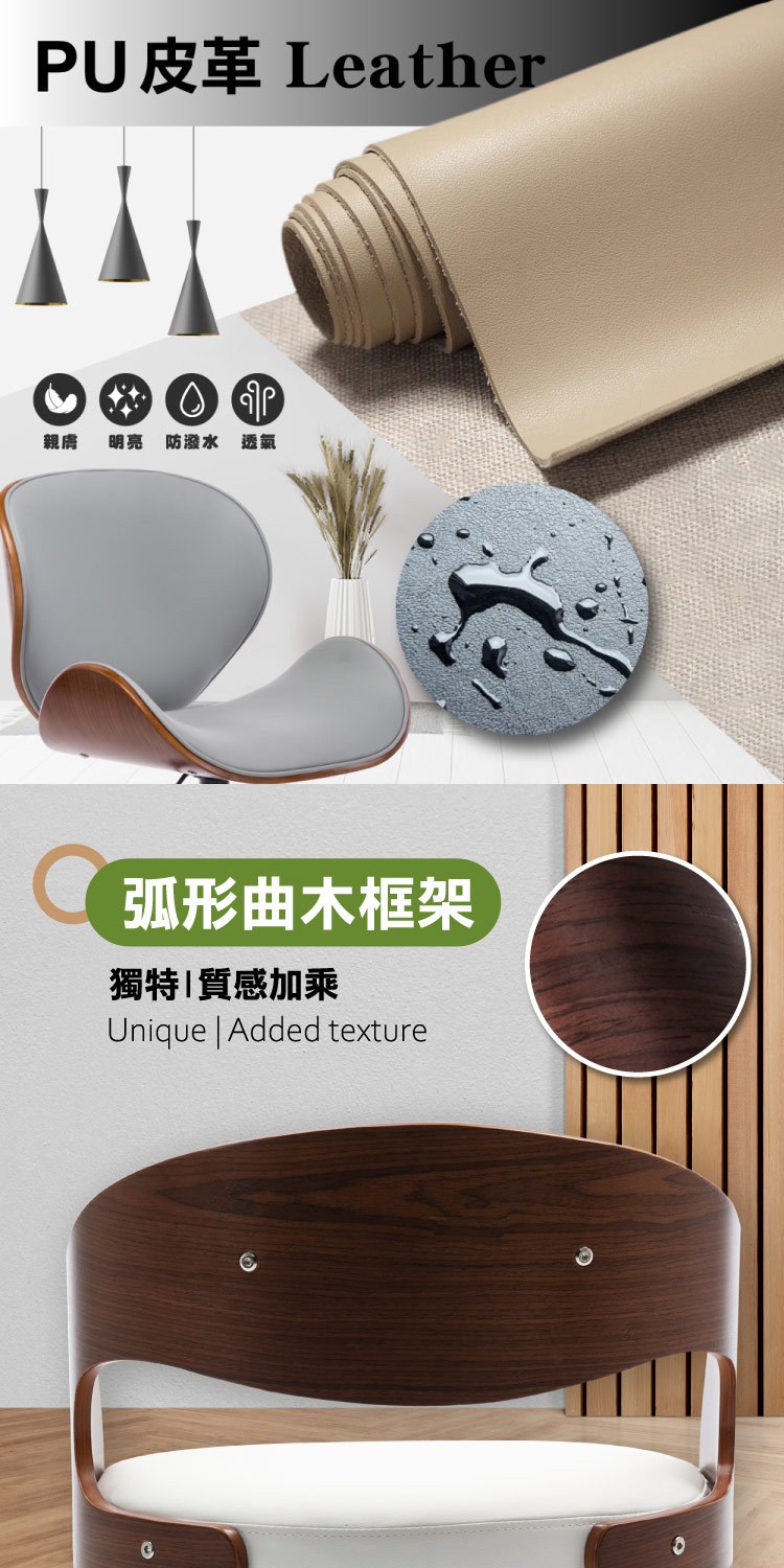 台灣與歐美同步販售、美規設計,防潑水透氣PU皮椅面,易於清潔,搭配獨特弧形曲木框架質感加乘,
